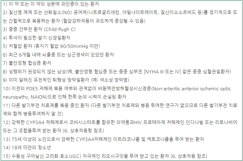 또한 레비트라는 중증의 간부전 환자나 말기 신장질환자는 복용 권장하지 않으며, 뇌 놀 중이나 심근경색이 최근 6개월 내 발병된 적이 있는 환자도 복용 금지합니다.