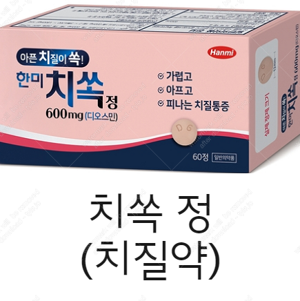 디오스민 성분은 근본적인 치질치료제가 아니고 염증을 유발하는 물질이나 세포 분비를 억제하여 염증 반응 및 붓기와 통증의 감소가 목적입니다. 그래서 치쏙정과 다른 치질 치료 의약품이 동반되어 사용되는 경우가 많습니다.