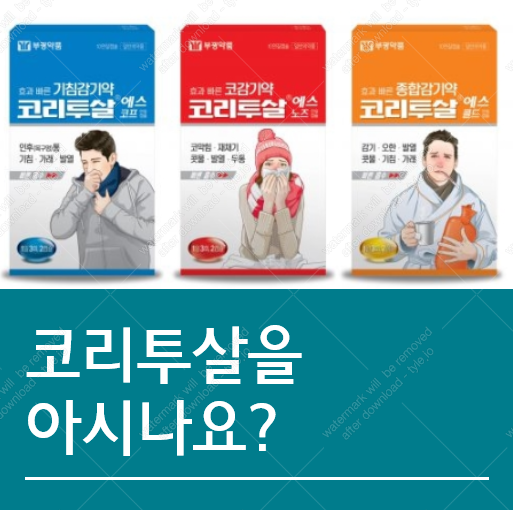 여기까지 알아본 코리투살에 대한 설명은 이정도면 충분합니다. 현재 코리투살 시리즈는 코리투살 에스노즈, 코프, 어린이 코감기약, 기침약 등 다양한 종류를 판매중입니다.