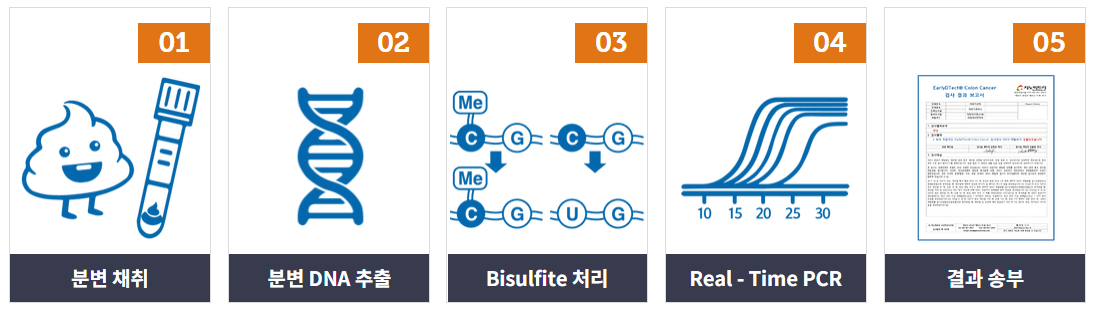 대장암 검사를 간편하게 할 수 있는 방법은 티비 광고를 통해 자주 접할 수 있는 얼리텍이란 제품입니다. 얼리텍은 분변에서 신데칸-2 DNA 메틸화 바이오마커를 측정하여 대장암 의심 여부를 미리 확인할 수 있는 방법입니다.