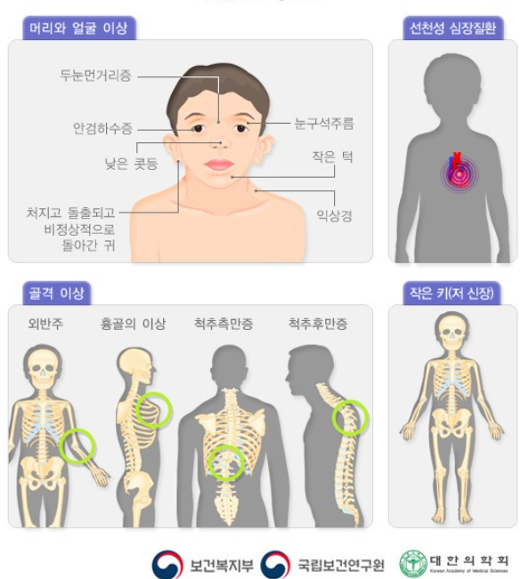 썸네일 사진은 서울아산병원 출처를 통하여 가져온 사진이다. 오늘은 누난증후군에 대한 포스팅인데 이 질환은 희귀병으로 불리고 있는 상염색체 우성 선천성 질병으로 유사한 질병은 터너증후군이 있다. [터너 증후군 알아보기]