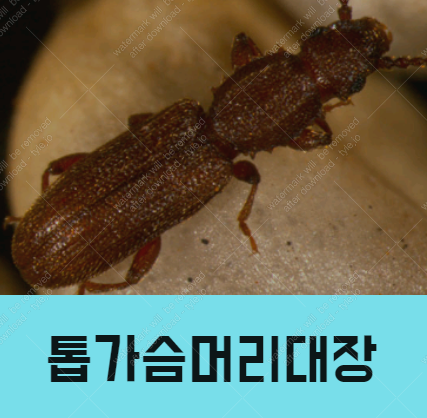이 녀석인지 헷갈릴 수 있는 이유는 거짓 쌀도둑 거저리와 많이 헷갈리기도 합니다. 이 녀석은 앞가슴 등판에 큰 톱니 모양 돌기가 6쌍 있는 특징을 확인할 수 있습니다.