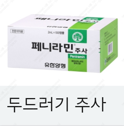 페니라민주사는 의사의 처방을 통하여 복용이 가능한 항히스타민제로 유한양행에서 생산 중인 전문의약품입니다. 대부분 항히스타민제는 알약으로 되어 있는데 더욱 빠른 효과를 봐야 하는 경우 이렇게 주사제 형태로 투약을 할 수 있습니다. 이 약은 투명한 약재로 앰플에 충전되어 있습니다.