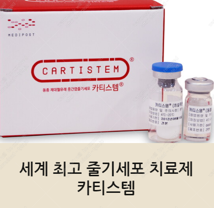카티스템은 타가(동종) 줄기세포 치료제로 허가된 메디포스트 회사의 결과물입니다. 개발비에만 무려 270억 정도가 들어갔으면 약 11년에 걸쳐 탄생하였습니다.