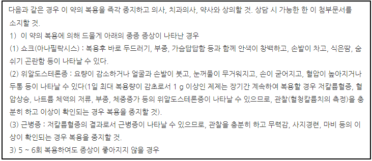 3. 고혈압환자, 부종환자, 녹내장환자, 신장장애 환자, 배뇨곤란 환자 등