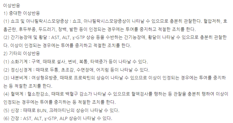 이 약은 부작용이 크지 않으나 환자에 따라서 다양한 이상반응이 동반될 수 있습니다. 특히 발진, 발적, 피로감, 가슴통증, 속 쓰림, 구갈, 복부팽만, 설사, 변비, 간수치 상승 등을 경험할 수 있습니다.