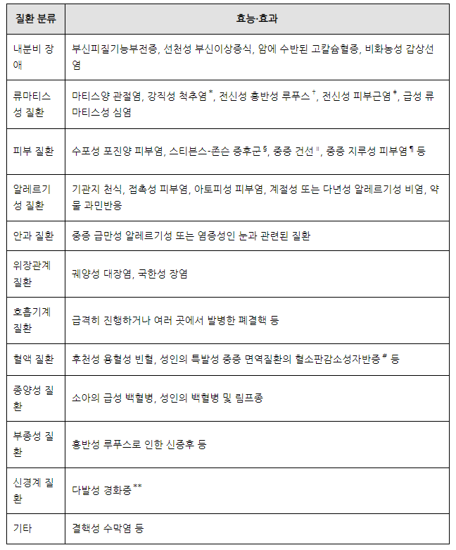 - 골다공증, 고혈압, 중증 근무력증 환자