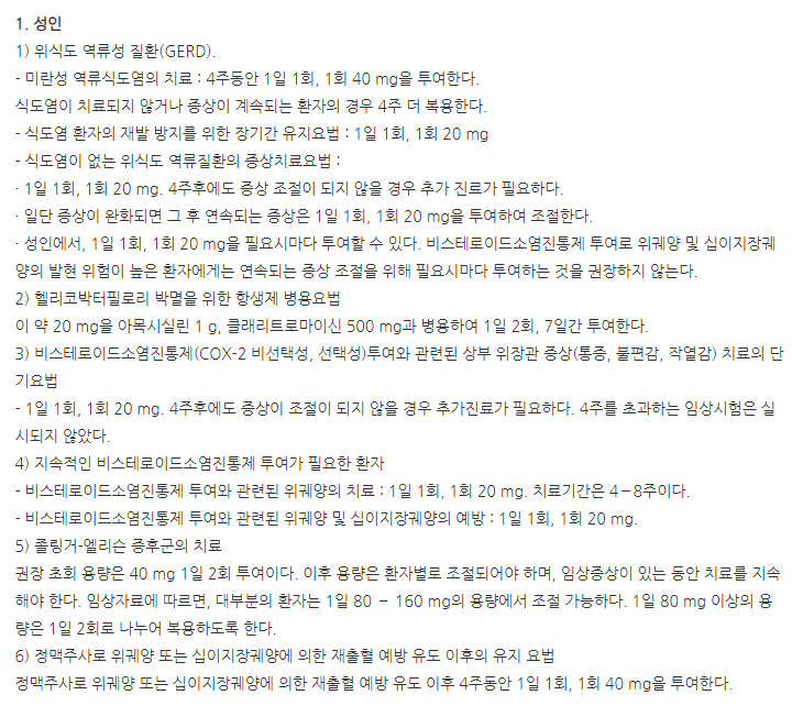 뿐만 아니라 헬리코박터 필로리 박멸을 위한 항생제 처방을 하는 경우 위를 보호하기 위한 병용제로 처방이 되고 있으며, 소염진통제를 장기 복용하는 분들의 위궤양 예방을 위해서도 복용을 하게 됩니다.